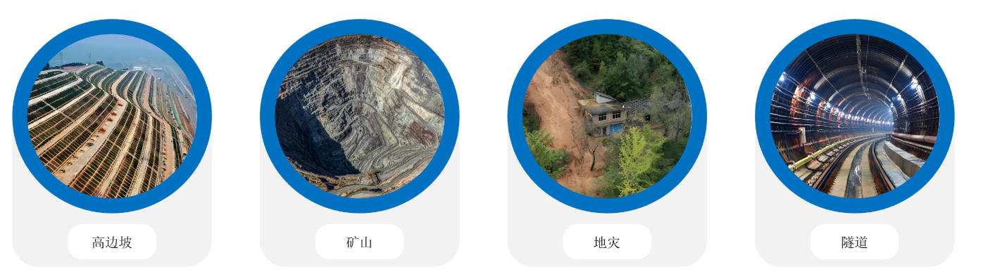 高边坡、矿山、地灾、隧道等远程可视化连续自动AI视频面域监测、视频空间测量、监测预警、远程视频巡视。